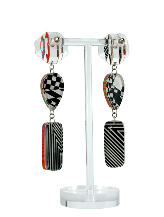 Op Art Reversible Red and Black 2 Tier Drops (wire)