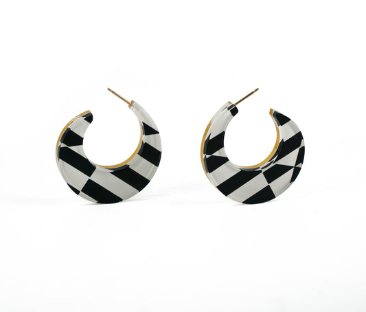 Op Art and Gold Reversible Round Hoops (post) MADE-TO-ORDER