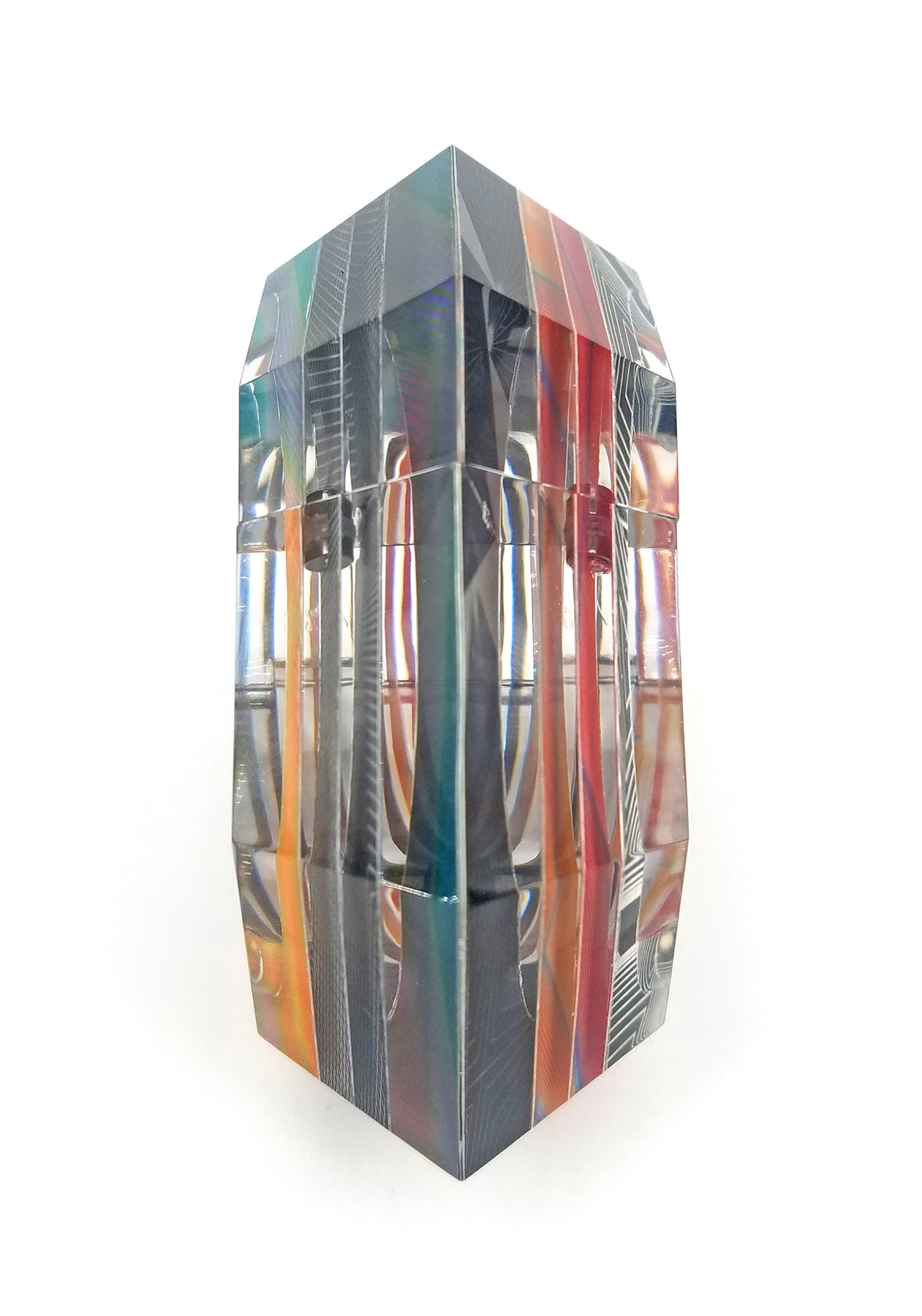 This stunning bracelet features bold, angular facets that capture light and create a mesmerizing optical effect. One side dazzles with vibrant, colorful stripes, while the reverse showcases monochrome op art patterns. The innovative hidden magnetic clasp ensures a seamless, elegant finish, allowing for effortless wear.
